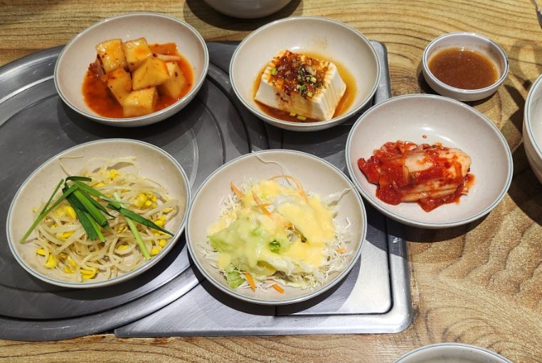 착한낙지에서는 낙지 요리의 풍미를 극대화할 수 있도록 다양한 기본 찬과 사이드를 제공한다.